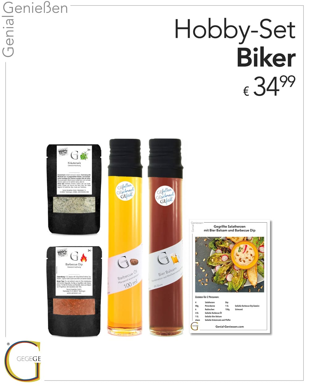 Anwendungstipps - Lieferung in 1-3 Werktagen (B2C)Herkunft: Wertingen, Deutschland.Unser „Bikers Bestes“ Set ist das ultimative Präsent für leidenschaftliche Motorradfahrer. Überrasche einen Motorrad-Liebhaber mit diesem einzigartigen Set, das Abenteuer und Geschmack perfekt miteinander vereint! Im Set sind Dips und Gewürze für Fleisch und Fingerfood, ergänzt durch Barbecue Öl und Bier Balsam zum Marinieren deines Grillguts und obendrauf kommt noch eine kreative Rezept-Sammelkarte für leckere gegrillte Salatherzen.